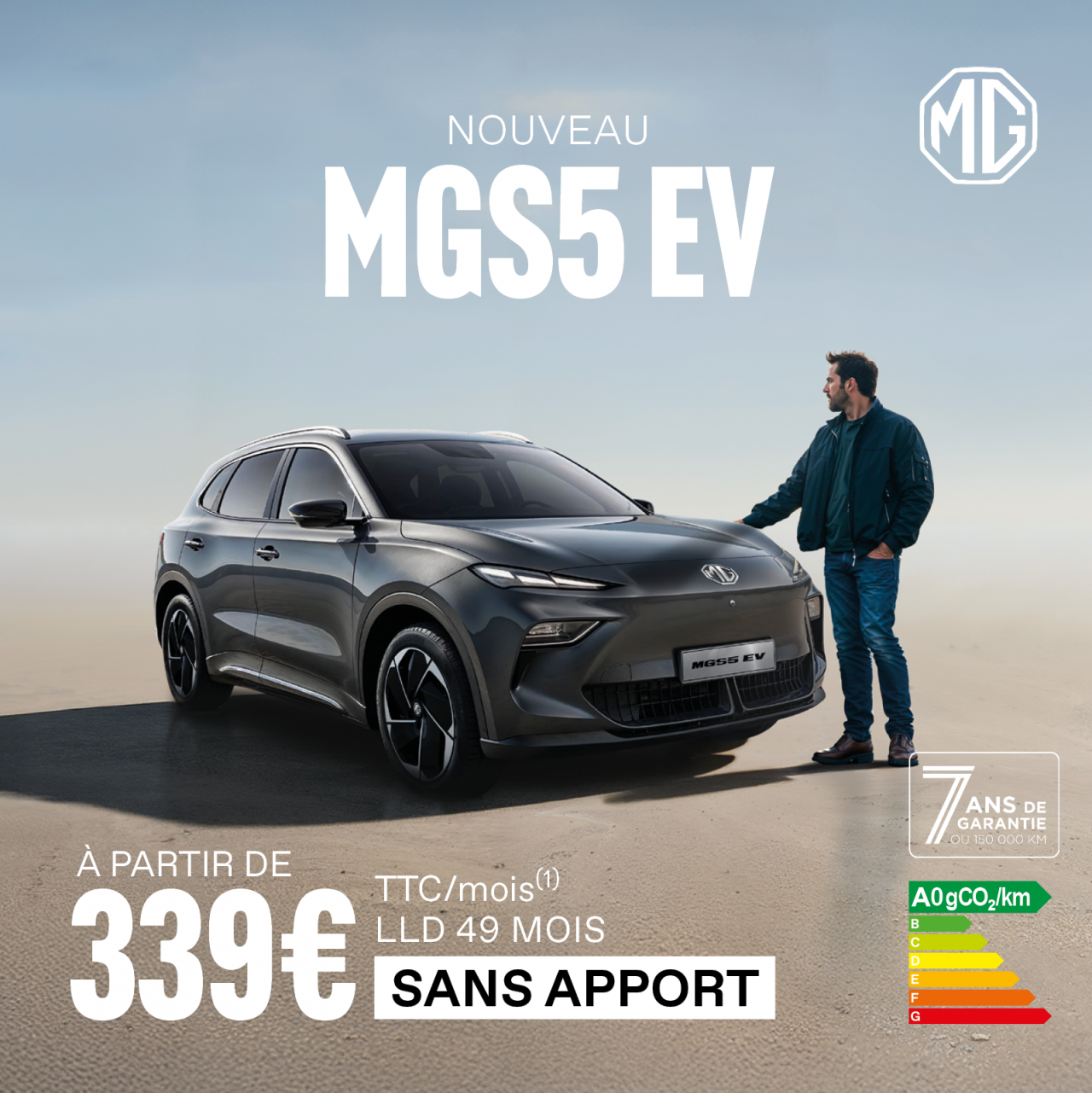 Le tout nouveau modèle de la gamme, le MGS5 EV.  Un SUV familial moderne en version 100% électrique, plus aboutie, plus confortable, et toujours aussi accessible.